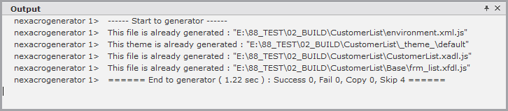 これで、作成されたアプリをWebブラウザで実行します。最初に作成したコードをJavaScriptのファイルに変換します。Outputウィンドウで、定期的にJavaScriptのファイルが作成されていることを確認することができます。