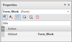 Propeertiesウィンドウでフォームのtitletextプロパティ値を変更します。titletextプロパティ値は、Webブラウザに表示されるタイトルで適用されます。