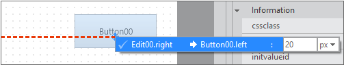 Edit 컴포넌트의 right 좌표값을 Button 컴포넌트의 left 좌표값에서 20만큼 떨어지도록 유지한다는 의미입니다.