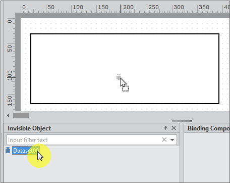 Invisible Object 창 목록에서 Dataset 오브젝트 아이콘를 마우스 왼쪽 버튼을 누른 상태에서 Grid 컴포넌트로 드래그합니다.