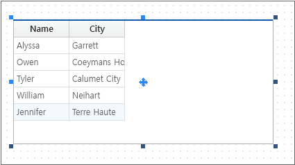 Grid 컴포넌트의 경계선이 굵게 바뀌면 마우스 왼쪽 버튼을 놓습니다.