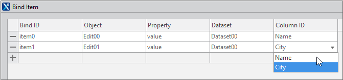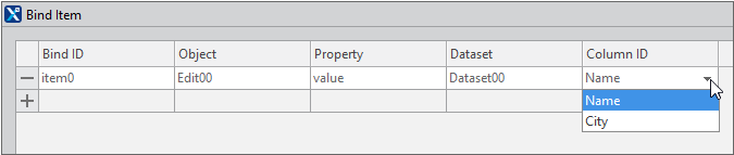 Bind Item 창이 뜨면 Column ID 항목값을 "City"로 선택하고 [OK] 버튼을 클릭합니다.