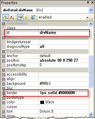 . Place Static at coordinates(0, 0) and set upt the border property values as “1px solid #808080ff”. Besides, place division(Div) next to it.