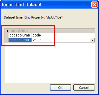 Specify properties of component to be bound, Dataset and column ID to be bound also.