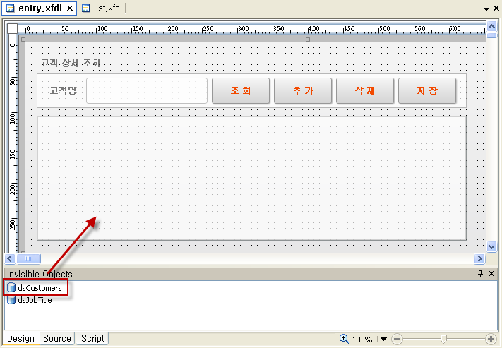Refer to "Sample Project (Creating Search Form-list.xfdl)" for Dataset and grid generation.