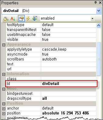 Setting up both property value of ID and text for Static, Division(Div) at Detailed area. Components which are placed on detailed area are as follows: