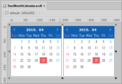 Form 크기는 컴포지트 컴포넌트의 용도에 따라 달라질 수 있습니다. 예제에서는 2개의 Calendar 컴포넌트의 크기에 딱 맞게 설정했습니다.