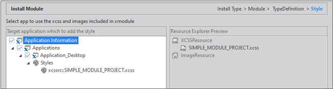 モジュールのインストール段階は、コンポジットコンポーネントを選択する段階まで同様です。 その段階で、「Next」ボタンをクリックしてStyleを適用するAppを選択します。