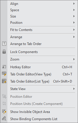 컴포넌트의 Tab Order 목록을 표시하고 순서를 변경할 수 있는 창을 띄웁니다.