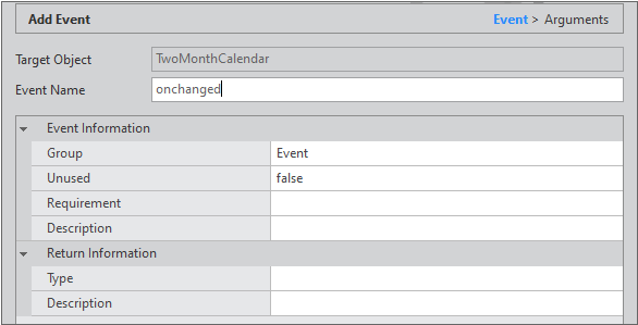If there is a value to return according to the event, then set the Type of Return Information. In the example, as there is no value to return, we did not specify the corresponding item.