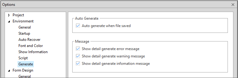 2 | Message | generate 작업 실행 시 발생된 메시지 출력 여부를 지정합니다. |