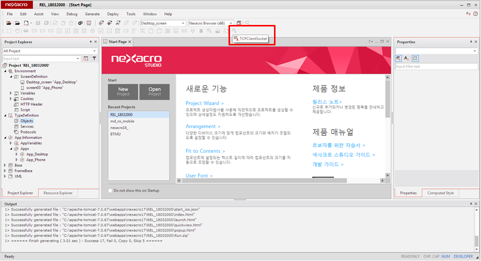 Desktop Runtime 환경에서 TCP/IP 통신을 할 수 있는 TCPClientSocket 기능을 추가했습니다. (RP.78428)