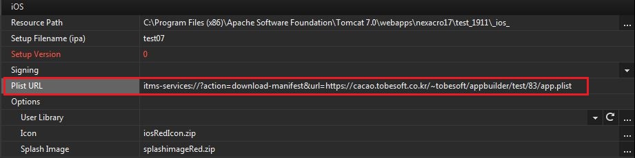• In-House 업데이트를 위해 plist 경로를 입력 시 itms-services URL scheme 를 포함하지 않았습니다.