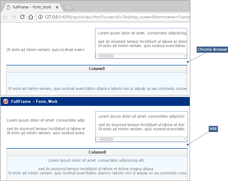 넥사크로플랫폼은 안정적인 동작을 위해 Form이나 컨테이너 컴포넌트에서 자체 구현된 스크롤 기능을 사용합니다.