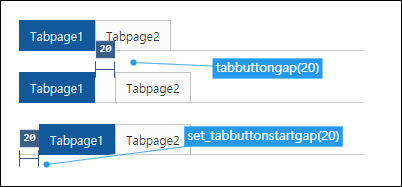Tab 컴포넌트에서 TabButton 배치 간격을 조정해주는 tabbuttongap, tabbuttonstartgap 속성을 추가했습니다.(RP 91909)