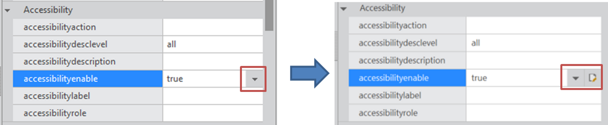 Grid 컴포넌트 GridCellControl, CellSubCellControl 오브젝트의 accessibilityenable 속성에 expr 기능을 추가했습니다. (RP 95871)