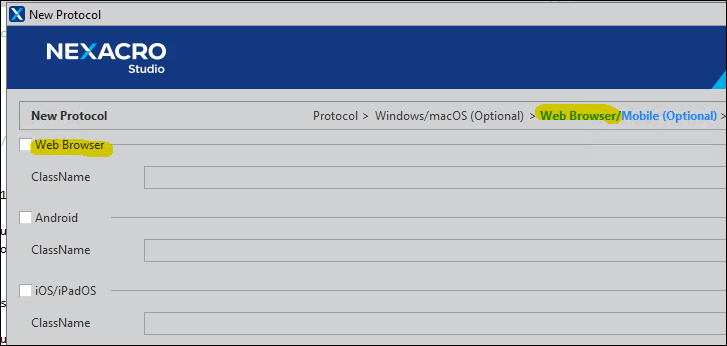 넥사크로 스튜디오 내 New Protocol Wizard에서 "HTML5"로 표시된 항목명을 "Web Browser"로 수정했습니다. (RP 92601)