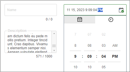 1개 또는 2개(시작일자와 종료일자)의 날짜와 시간을 입력받거나 선택하기 위해 팝업창으로 띄우는 컴포넌트입니다.