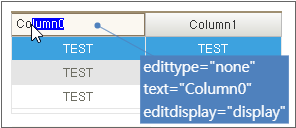 また、edittypeプロパティ値およびBand領域に関係なく、セルのeditdisplayプロパティ値が「display」である場合に表示されるコントロールは編集モードでないため、テキストの選択ができません。