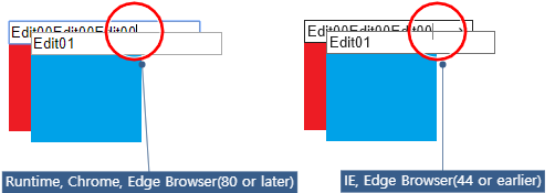 Edgeでは、Edit系コンポーネントのonkillfocusイベント関数内で同一コンポーネントのsetFocusメソッドを呼び出す場合、フォーカスのみ移動し、キャレットが移動しない事象があります。