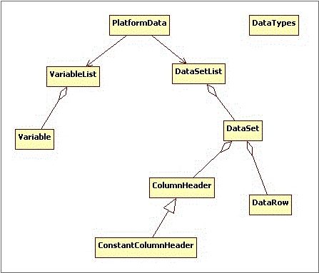 VariableList와 DatasetList를 가지고 있는 PlatformData는 데이터 구조의 최상위에 위치하고 있으며, 데이터 이동과 데이터 송수신의 기본 단위로 사용되어집니다.